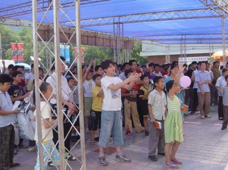 臺(tái)下連小孩子也熱情非凡,每人還帶上一塊商科集團(tuán)的奧運(yùn)活動(dòng)的標(biāo)貼,支持奧運(yùn)、支持商科。