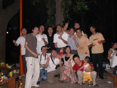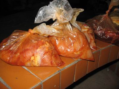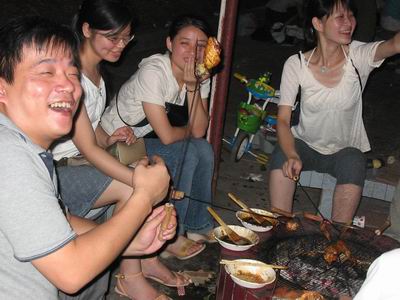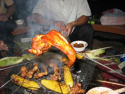 有燒烤的極品——牛肉、雞腿、雞翅、豬排……,另外還配備飲料、水果、最重要的是月餅……西西