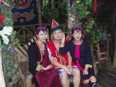 商科男兒的優秀讓當地黎族的女孩子一見鐘情,紛紛表示愛意(注:黎族的女孩子摸你的耳朵是表示喜歡你,看來我們這位同事可是艷福不淺,不只是一見鐘情,還一箭雙雕。