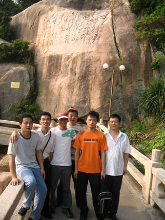 歡呼聲中我們踏上了十一之旅,來到富有豐富人文、歷史景觀的外伶仃島,外伶仃島離香港長洲島只有6海里,主峰伶仃峰高達311.8米,是萬山群島最高峰。站在伶仃峰可清楚的觀望香港的景色(如太平山、青馬大橋等香江景物)。天氣晴朗不起霧的時侯,清晨在山頂等候太陽從大海的地平線上跳出,冉冉升起,整個洋面一片金黃,霞光萬丈,美不勝收,真是一大奇景可惜我們這次沒有看到此景!!!!伶仃洋上最有影響,千古傳誦的是文天祥“人生自古誰無死、留取丹心照汗青”這一千古絕唱。這是毛澤東主席生前手書的文天祥《過伶仃洋》詩的石刻。