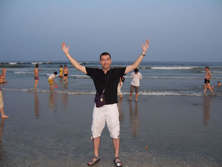 十月國慶,天氣放晴,廣分上川團(tuán)一行二十二人,浩浩蕩蕩來到了位于臺山的上川島。上川島有很多迷人的海灘,最受歡迎的是飛沙灘(4800米)、金沙灘(5200米)、銀沙灘(800米),三者間相隔僅一公里,雖各沙灘風(fēng)姿各異,但均呈現(xiàn)出沙質(zhì)潔白細(xì)膩、海水清澈見底子薄、沙灘平緩寬闊、海浪多而不大、腹地林木郁郁蔥蔥。