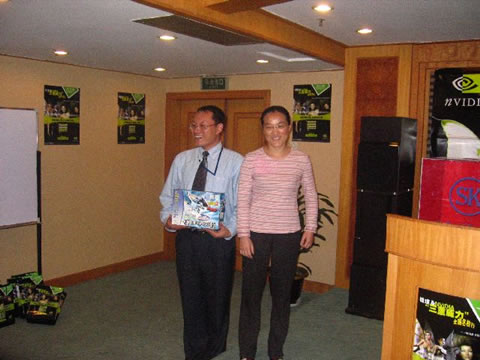 大獎誕生,銘瑄6系顯卡!趙先生和侯先生分別頒獎,經銷商們都興奮不已。