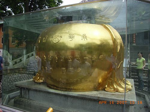 寺廟規(guī)模宏偉,香火鼎盛,殿宇巍峨,氣派非凡,殿中佛像莊嚴(yán),五百羅漢栩栩如生,寺內(nèi)保存有六祖慧能祖師真身,更珍藏有中國女皇武則天的護(hù)寺圣旨,御賜千佛袈裟及大藏經(jīng)等珍貴文物,極具歷史價值。(可是不允許拍照,好可惜。)