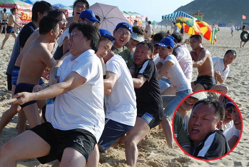 拔河比賽,后面那個紅臉團友注意了,輸就輸唄,不哭。。。不哭。。。