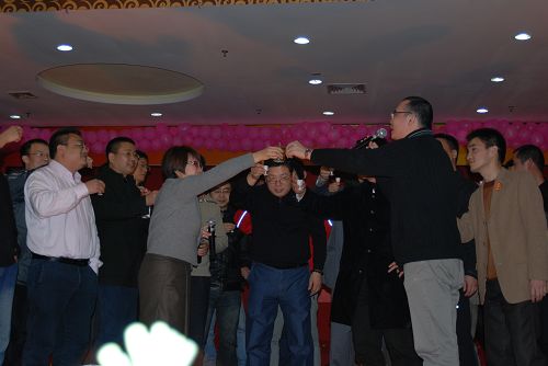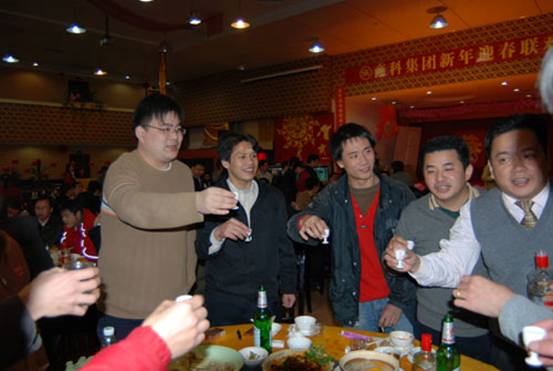 公司領(lǐng)導(dǎo)與大家一起為2008干杯
