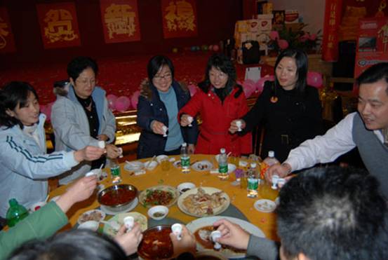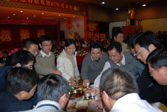 不知不覺兩個多小時已經(jīng)過去了,在同事們快樂的笑聲中,游戲節(jié)目圓滿結(jié)束了。大家大概也都饑腸轆轆了,公司為全體員工準(zhǔn)備了豐盛的晚宴享用,大餐開始了。