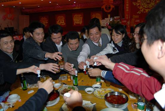 公司領(lǐng)導(dǎo)為同事們敬酒