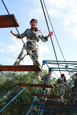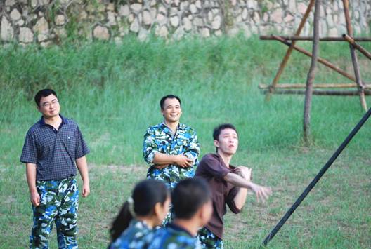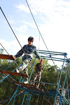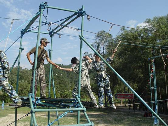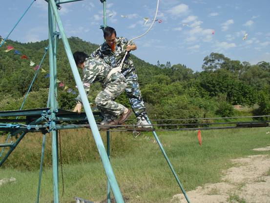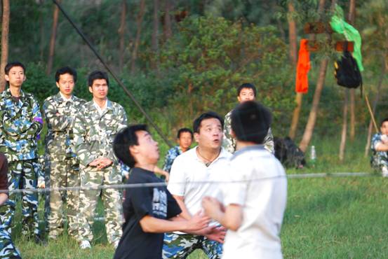 飛奪瀘定橋。這個項(xiàng)目是從高空的木板橋上通過,木板的間隙比較大。看似簡單,但是很多人站上去,雙腿就開始不由自由的哆嗦,這很能鍛煉人的勇氣哦。 這個項(xiàng)目讓許多人有一點(diǎn)害怕,但是當(dāng)有的同事在上面感到恐懼的時(shí)候,下面的同事齊心協(xié)力的為他加油打氣,增加他的信心和勇氣。在大家的鼓勵下,同事們一一通過了這個項(xiàng)目。