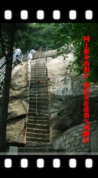 大約一小時后,我跟O同學(xué)爬上金鎖關(guān),在喊我們買手電的人面前驕傲的掏出我們的裝備。前路沒了引路燈,風(fēng)險恐懼倍增,正擔(dān)心后面的團員,O同學(xué)說“不用擔(dān)心,成年人會知道要買手電的,且路上人那么多,相互會照應(yīng)呀”。于是,再次上路,行至云梯,我們膽怯了,直立的石梯,3條鐵索,完全是沒有安全繩的純攀巖,放棄吧。幸好還有個相對容易的鐵梯,轉(zhuǎn)去鐵梯,只是有扶手的鐵梯是供人下山用的,窄梯屬單行線,只能等山上的人下完,才能上,否則必然極度危險。我倆是沒有耐性的人,等了3分鐘,又跑回石梯。抓上鐵索,蹬上石梯,沒來得及后悔,已沒了力氣,O同學(xué)看我不動了,喊我退下來。我怎甘心退下來,喊了下旁邊的帥哥,“我沒力氣了,你等等我,幫幫我”。帥哥空了一只手,扶了我一把,突然讓我有氣力調(diào)整姿勢了,原來剛才因為害怕抓緊鐵索,試圖用手臂力量征服云梯是錯誤的,既然是梯,就該用腿蹬上去,喊著“我一定要爬上去”,調(diào)整好姿勢,謝過帥哥,輕松的爬了上來,東峰頂即在眼前,云梯之上的那刻,狂喊狂喜。可低頭,莫放棄,終會獲得。