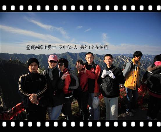 太陽出來了,觀日的撤退人潮堆滿了山路,挪回飯店,準備好再次出發(fā),已近7點半。南峰我們來了,照樣9個人,呼嗤嗤的爬,原本緊張兮兮的害怕前路艱險,實際上南峰雖然是最高峰,但難度不高,路程也不遠,約莫8點40,9個人中7人完成登頂。