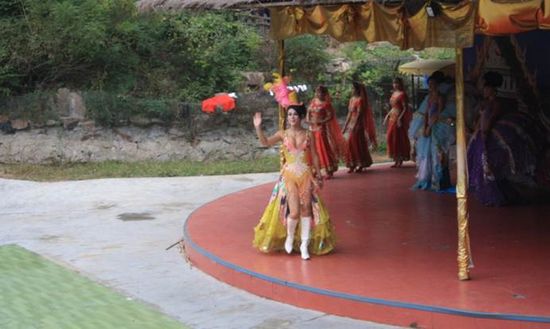 聽說這個可是這兒的招牌人妖呀。挺高的個兒。 表演很一般,別看這破的小臺,來看的人還挺多,看后發現真不怎么的,和海南那個人妖比起來真是太遜色了,沒看頭。哈哈。 接下來去的闖關東影視城,據說很多少電視劇和電影都有在這兒拍過,看了還真是。