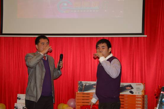 節(jié)目熱鬧非凡的進(jìn)行著,偶爾穿插的有獎(jiǎng)問(wèn)答.腦筋急轉(zhuǎn)彎活躍著現(xiàn)場(chǎng)氣氛,公司為經(jīng)銷商特別準(zhǔn)備的三、二、一等獎(jiǎng)也不斷揭曉;