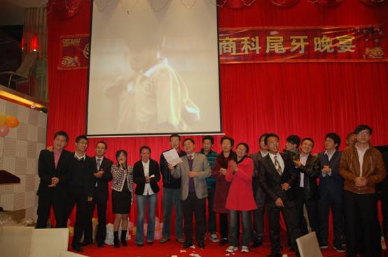 晚宴進(jìn)入最后高潮,商科各位公司同仁一起上臺(tái)答謝經(jīng)銷商朋友,并高唱<<朋友>>,在歌聲中緩緩落下帷幕。。。