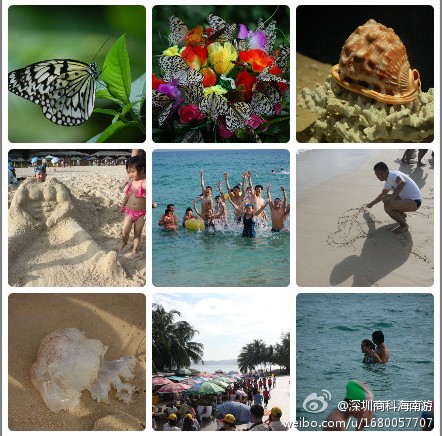 離別分界洲,午后參觀完蝴蝶館,隨后就來到了亞龍灣;迎面第一眼就看到了圖騰廣場,參觀了設在亞龍灣中心廣場底部的貝殼館,離開五彩繽紛的貝殼館區,醒目的“天下第一灣”就映入眼前;一個半月形海灣,沙灘平緩,沙質潔白細軟,灣內波平浪靜,綠山環抱著清澈的海水,我們迫不及待地投身大海,與三亞來了一次最親密的接觸;海邊嬉戲,陽光。沙灘。大海。放松身心。放縱內心的慵懶,回歸到原位。。。