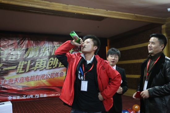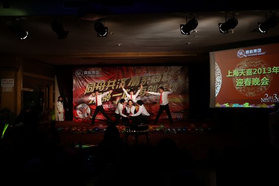 2013年1月13日上海分公司在坤明湖度假村召開了一場別開生面的年度總結會。會議包括上午的“2012年度總結會議”、下午的“室內激情拓展活動”還有晚上的“2013年天喜春節聯歡晚會”。