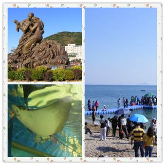 第三天也是我們行程的最后一天了,這一天行程也很緊湊首先來到了俄羅斯風(fēng)情街,在哪里才真正知道了歐洲的建筑風(fēng)格。最后一個景點也是此行我最期待的棒棰島,棒棰島位于大連市濱海路東段,大連市東南約5公里處。是一處以山、海、島、灘為主要景觀的風(fēng)景勝地。國內(nèi)幾大國賓館之一、著名的棒棰島賓館就坐落在這里。這里三面環(huán)山,一面瀕海;北面為群山環(huán)繞,南面是開闊的海域和平坦的鵝卵石沙灘。棒槌島名字的來歷是因離岸500米遠處的海面上有一小島突兀而立,遠遠望去,極象農(nóng)家搗衣服用的一根棒槌,故稱棒槌島。在哪里體會了大連海水的美麗。大連極地海洋世界那里是孩子們的天堂,國慶人山人海我和同事還是帶著兒子看了動物表演!其樂無窮撒!