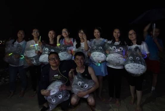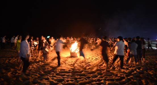 到了海邊,除了體驗(yàn)美麗的海島風(fēng)情,當(dāng)然還要享受海鮮大餐,魚蝦蟹貝,美味的晚餐盛宴,讓大家大飽口福。大快朵頤之后,開始了篝火晚會(huì)。在海灘上,伴著陣陣的濤聲,歡快的音樂聲,大家挽著手,環(huán)成圈,跑著,跳著,忘卻一切壓力與煩惱,盡情歡暢。期間,還對(duì)下午比賽勝出的隊(duì)伍進(jìn)行了頒獎(jiǎng),沒有獲獎(jiǎng)的隊(duì)伍也不要沮喪喲,你們都是最棒的!