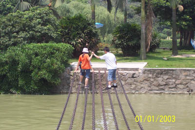 來個“金雞獨立”架勢,挑戰自己的勇氣。