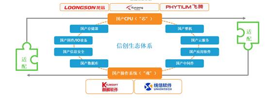 因此,在“十四五”的政策支持下,圍繞國產(chǎn)通用計(jì)算平臺(tái),聯(lián)合產(chǎn)業(yè)鏈相關(guān)的創(chuàng)新力量的信息技術(shù)應(yīng)用創(chuàng)新產(chǎn)業(yè)的生態(tài)體系就逐漸成型。產(chǎn)業(yè)布局以國產(chǎn)CPU(海光、龍芯、鯤鵬等)作為核“芯”,加上國產(chǎn)操作系統(tǒng)(麒麟、統(tǒng)信等)作為“魂”,中間適配整機(jī)、儲(chǔ)存、IO、數(shù)據(jù)庫、中間件、云服務(wù)應(yīng)用軟件等等。讓信息時(shí)代新基建不僅自主可控與安全,而且還能反向推動(dòng)產(chǎn)業(yè)發(fā)展,形成閉環(huán)。