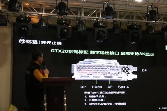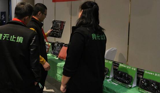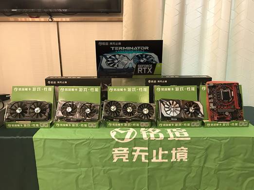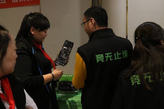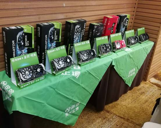 會議現場,展示了系列顯卡,新一代搭載英偉達圖靈架構的RTX 20系列顯卡,具有第四代太極陰陽散熱系統、RGB燈效、定制背板、全新太極扇葉等多項功能,保證玩家在享受游戲刺激時仍然保持顯卡溫度低狀態,滿足高端網吧的業務需求。現場的小伙伴們也迫不及待地進行了體驗。