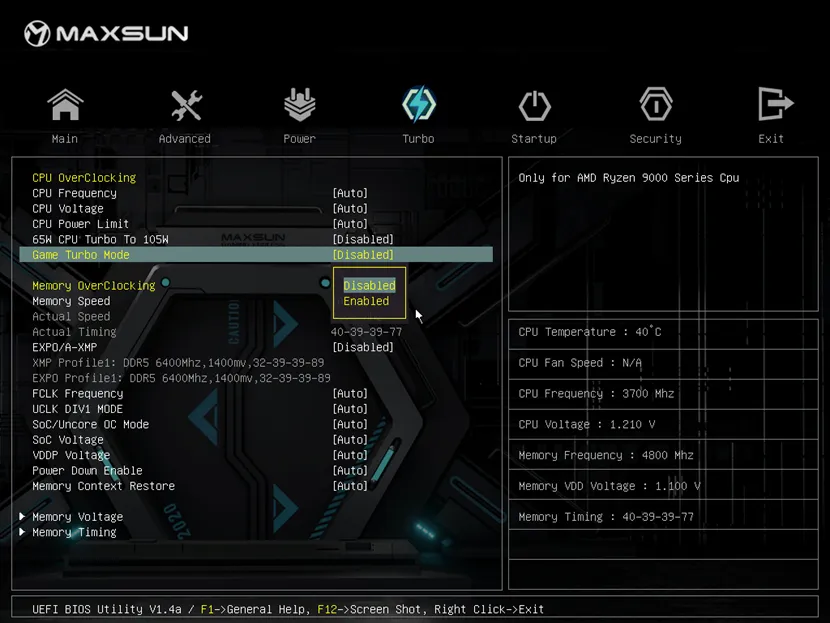 在Turbo頁面找到Memory Latency Reduce選項(xiàng),選擇Enable/打開 后按F10保存,重啟后即可生效。