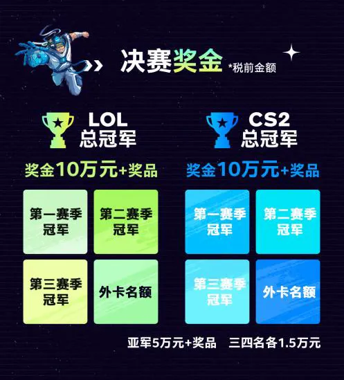 本次總決賽的獎金額度十分豐厚,總獎金高達數十萬元人民幣。其中,總冠軍將獲得 10 萬元現金獎勵以及價值不菲的獎品;亞軍也能收獲 5 萬元獎金和精心準備的禮品;季軍和殿軍同樣能分別得到 1.5 萬元的獎勵。這份榮譽不僅僅是對選手們長期努力的高度認可,更是為他們在未來的電競逐夢之路上提供強大的支持與動力。