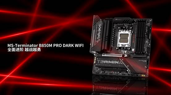 另外,銘瑄Terminator B850M PRO系列主板還推出了一款黑色版的銘瑄Terminator B850M PRO DARK WIFI。作為銘瑄終結(jié)者 PRO 系列的黑色款,這款主板將 “硬核美學(xué)” 貫徹到底,同樣的暗紅線條如機(jī)甲血脈般點(diǎn)綴,大面積的全金屬裝甲采用噴砂與拉絲工藝交織,打造出如同未來(lái)機(jī)甲般的冷峻質(zhì)感,低調(diào)中透著霸氣。無(wú)論是搭配側(cè)透機(jī)箱展示內(nèi)部硬件,讓每一處細(xì)節(jié)都成為視覺(jué)焦點(diǎn);還是打造簡(jiǎn)約風(fēng)、電競(jìng)風(fēng)主機(jī),這款黑色主板都能完美適配,輕松 hold 住各種裝機(jī)風(fēng)格,滿(mǎn)足不同用戶(hù)的審美偏好。