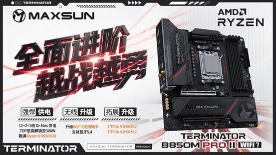自銘瑄終結(jié)者B850M PRO系列主板推出以來(lái)一直廣受好評(píng),此次終結(jié)者 PRO再度進(jìn)化,推出二代新品MS-Terminator B850M PRO II WIFI7,從外觀(guān)、拓展到網(wǎng)絡(luò)實(shí)現(xiàn)多方位戰(zhàn)力升級(jí),以更硬核的配置,為玩家打造新一代高性?xún)r(jià)比裝機(jī)利器。